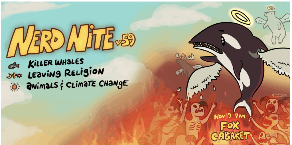 Welcome to Nerd Nite v54! What do salmon, work effects on health, and songs about science have in common? We wanted to learn about them so they’re next up for the first of two Fall Nerd Nites coming your way! Tickets as always go fast, so get in here!
